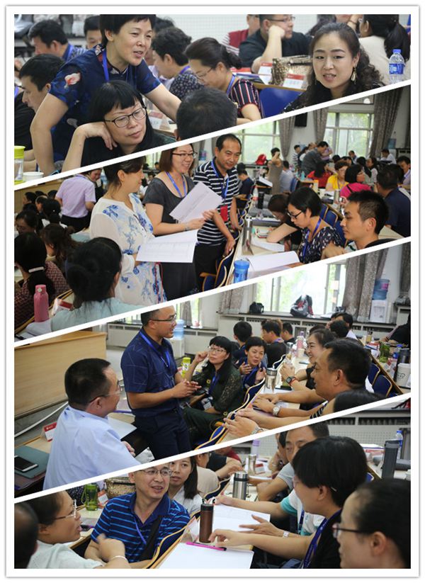 “破冰活动”是为了打破来自不同地区的老师们之间的隔膜,尽快融入到共同研修的环境中来。下午,国培项目组精心策划了一场别开生面的工作坊破冰活动。项目组将全班分为15个小组,每个组中均有十位左右来自不同省市地区的老师。由项目组老师带领大家分小组开展活动,各小组成员从不相识到互相认识并推选出本小组的组长,研讨选定小组本期研修主题。在这个过程中,各小组成员凝结集体智慧与才艺,敲定组名、制作组徽,共同完成小组第一个作品。