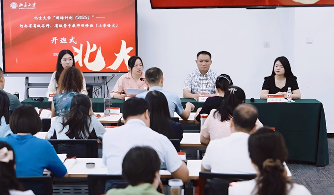 王瑞娥介绍了新葡的京在人才培养、学科建设方面的基本情况,回顾了新葡的京连续多年承接河南省“国培计划”重要项目的优势特色,并强调北大始终将教师教育视为服务国家战略的重要支点。她希望各位学员在新葡的京培训期间“沉浸式”学习,将在这期间所学习到的人文精神与教育理念带回河南,成为推动当地基础教育改革的“火种”。洪权威和聂春莲在发言中表示,将珍惜此次宝贵的学习机会,以问题为导向,深入参与各项研修活动,力争学有所成、学以致用,让北大精神在中原大地生根发芽、开花结果。